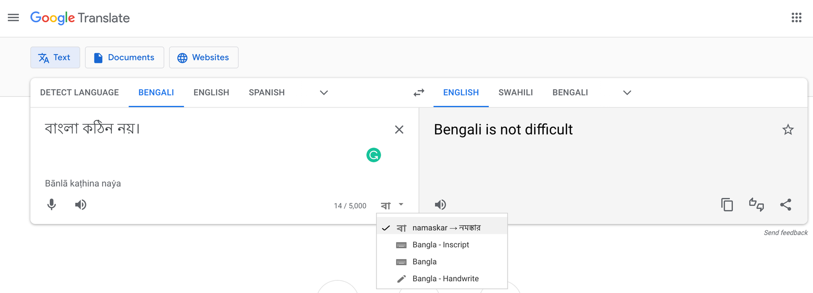However, many people prefer using Google Translate to type in the Bengali alphabet.