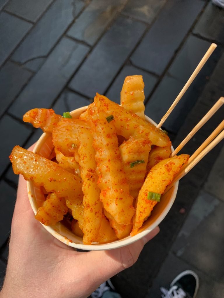 If one day you find yourself at a Taiwanese night market, be sure to try some 地瓜球 (dìguā qiú): it’s a delicious local specialty! Even if you aren’t a huge fan of sweet potatoes, you might still love it for its light, fluffy texture.