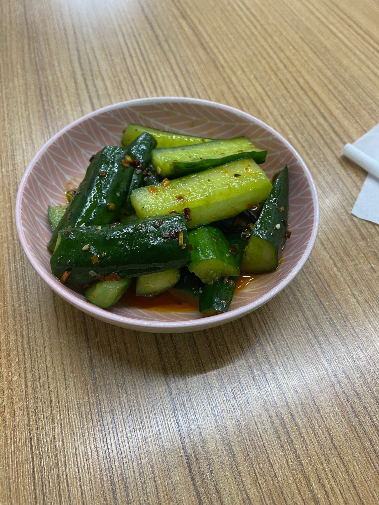 One of my personal favorites, cucumber is most often (and most deliciously) cut up and mixed with salt, vinegar, pepper, and other ingredients to make a tangy, slightly spicy mix. This is called 涼拌小黃瓜 (liáng bàn xiǎo huáng guā).