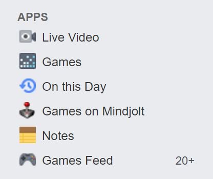 When you’re on the Facebook homepage at a desktop computer, you’ll see a sidebar filled with all of the Groups, Games and Pages that you’re a fan of. Towards the bottom of that sidebar you’ll find a little section of ‘Apps’. It should look a little something like this:
