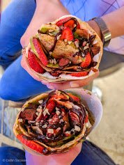• Japanese crepes (クレープ, kure-pu) are to-die-for. Take a look at the amazing varieties and tell me your mouth isn’t watering. Japanese crepes are the best thing I’ve ever eaten in my life.