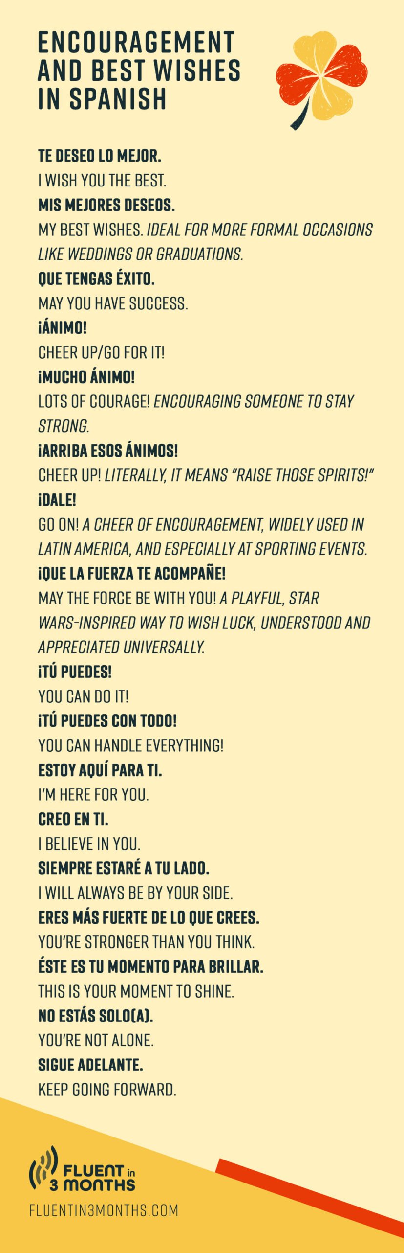 Of course, there’s so much more Spanish than just buena suerte! The list of well-wishing can go on and on, but here are some of the most common ways to wish someone good luck.