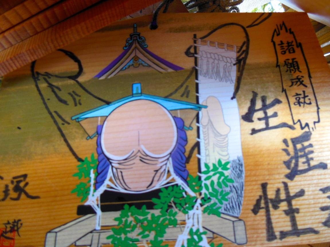 The shrine has a sense of humor. Even the ema (絵馬) – decorated wooden boards on which you write a wish – are ostentatiously true to the theme: