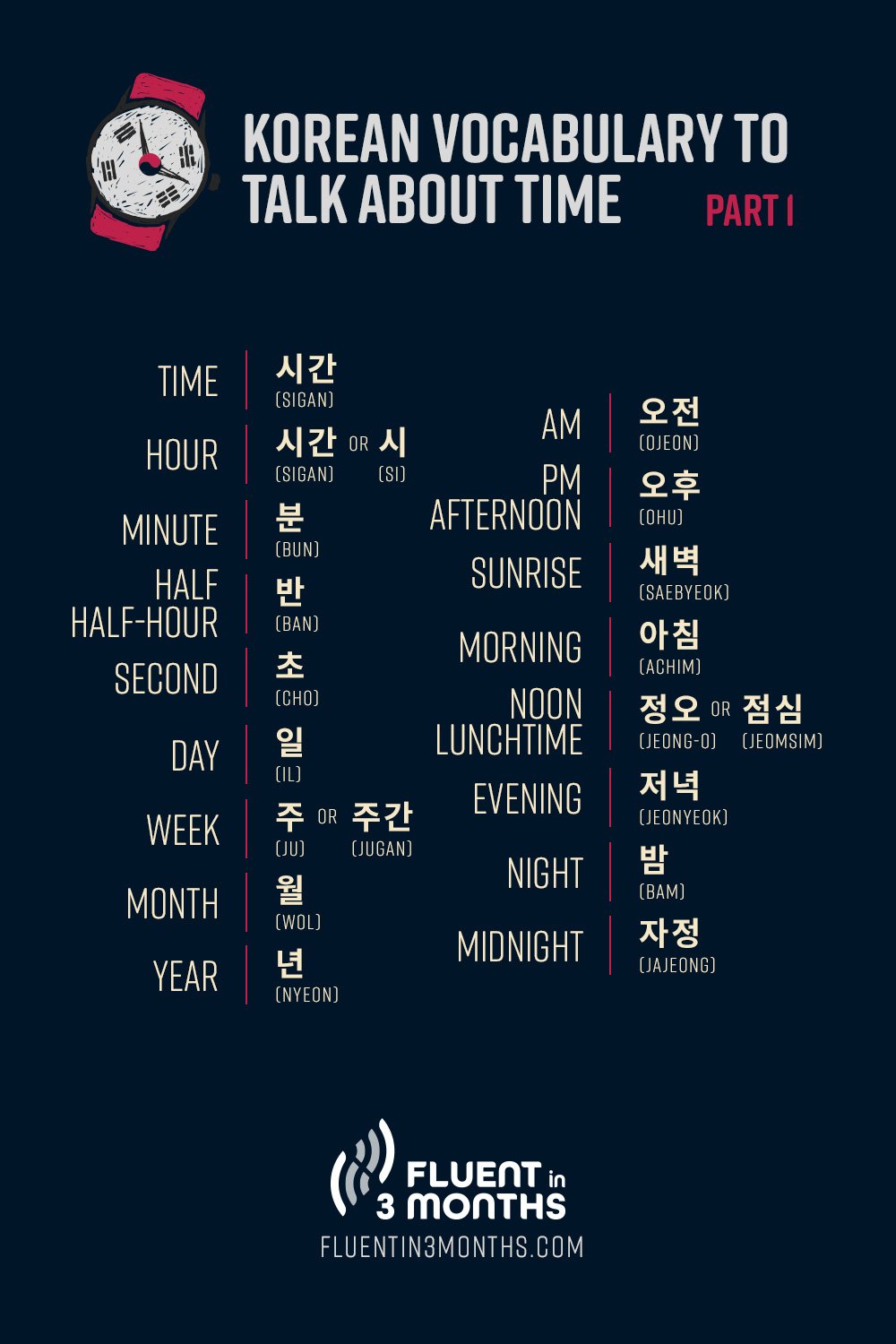 One other question you may have before we get started: Does Korea use a 12 or 24-hour clock? Like in many parts of the world, the 12-hour clock is most common in Korea. But 24-hour clocks are used in the military and time schedules (like at the airport, for example).