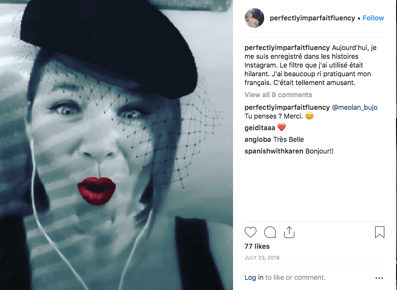 Next thing you know, there are native French speakers commenting on my posts with words of encouragement. One teen in France told me that my accent is quite pretty. I couldn’t even believe she understood what I had recorded. Somewhere in the far recesses of my mind I still think I’m making up words when I speak my target language.