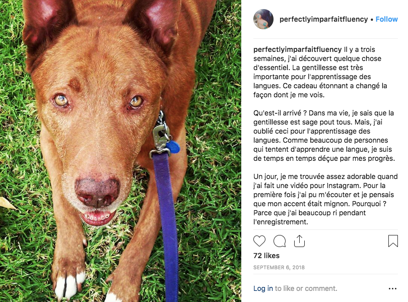 My Instagram handle is @perfectlyimparfaitfluency. I wanted to remind myself every time I log in that my goal is fluidity not perfection when I speak French. Perfectionism can be paralyzing. Whereas making messy mud pies while learning languages can be liberating.