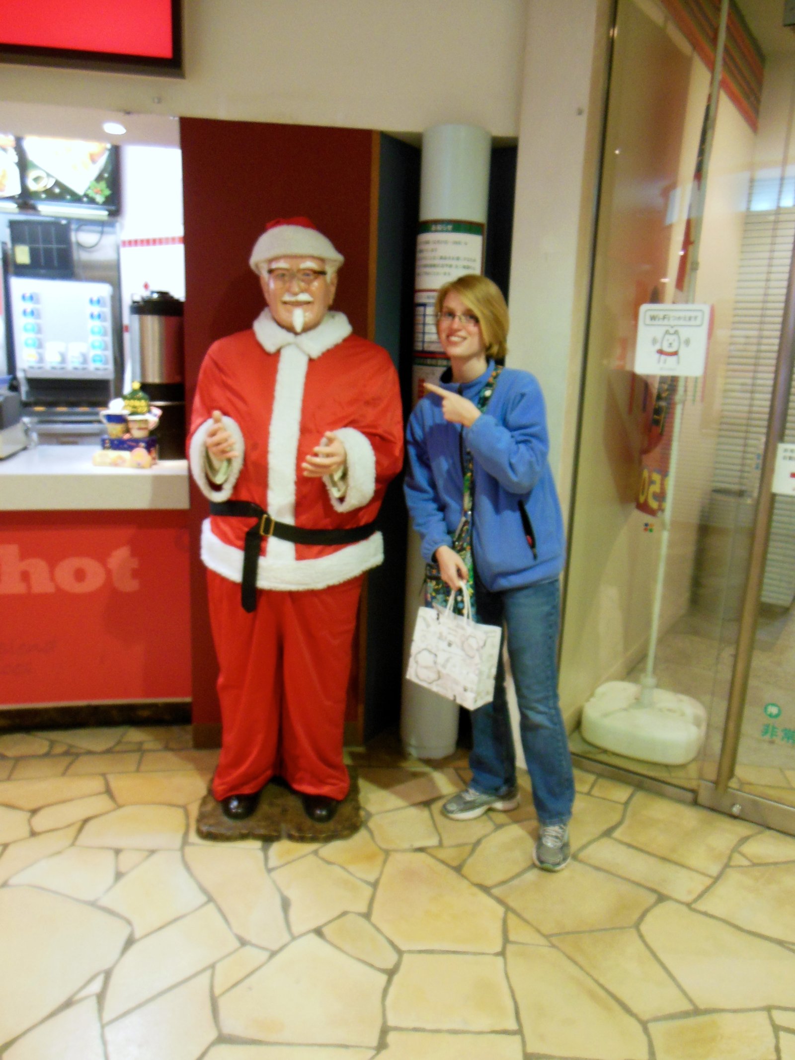 Even though the nationality of the foreigner overheard is unknown, KFC marketed eating fried chicken for Christmas as an American tradition, and this belief has stuck. (But as an American, I have my doubts that the foreigner in question would have been from the same country as me. Since turkey is a November Thanksgiving staple, many people are tired of turkey by the time Christmas rolls around. Who knows!) In any case, imagine the surprise when I tell Japanese people that we don’t eat KFC for Christmas!