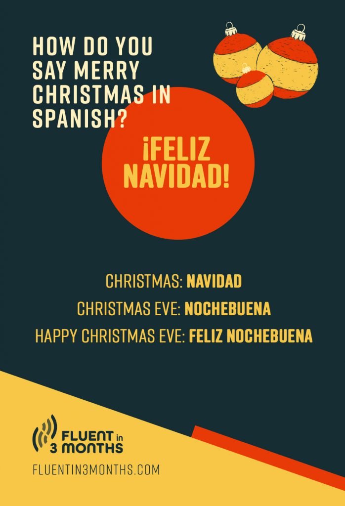 In Spanish, “Christmas Eve” is Nochebuena, which means “the Good Night”. So you might have guessed it: “Happy Christmas Eve” is Feliz Nochebuena.