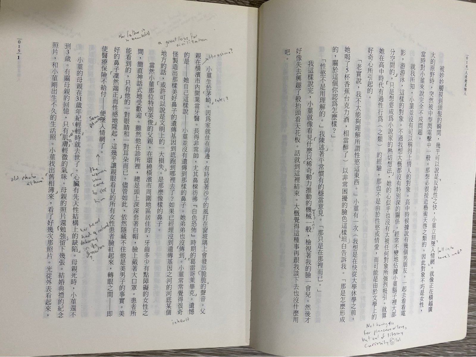 And just as importantly, I give “likes”: the writer in me highlights sentences I find particularly beautiful or insightful, always looking for inspiration in the craft of others. I may even draw a little heart where I think something is cute.