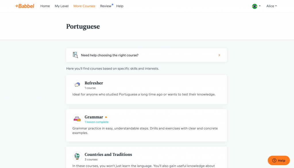 With a one-month trial period, and as part of my current mission to learn a fifth language, I explored Babbel’s Portuguese courses.