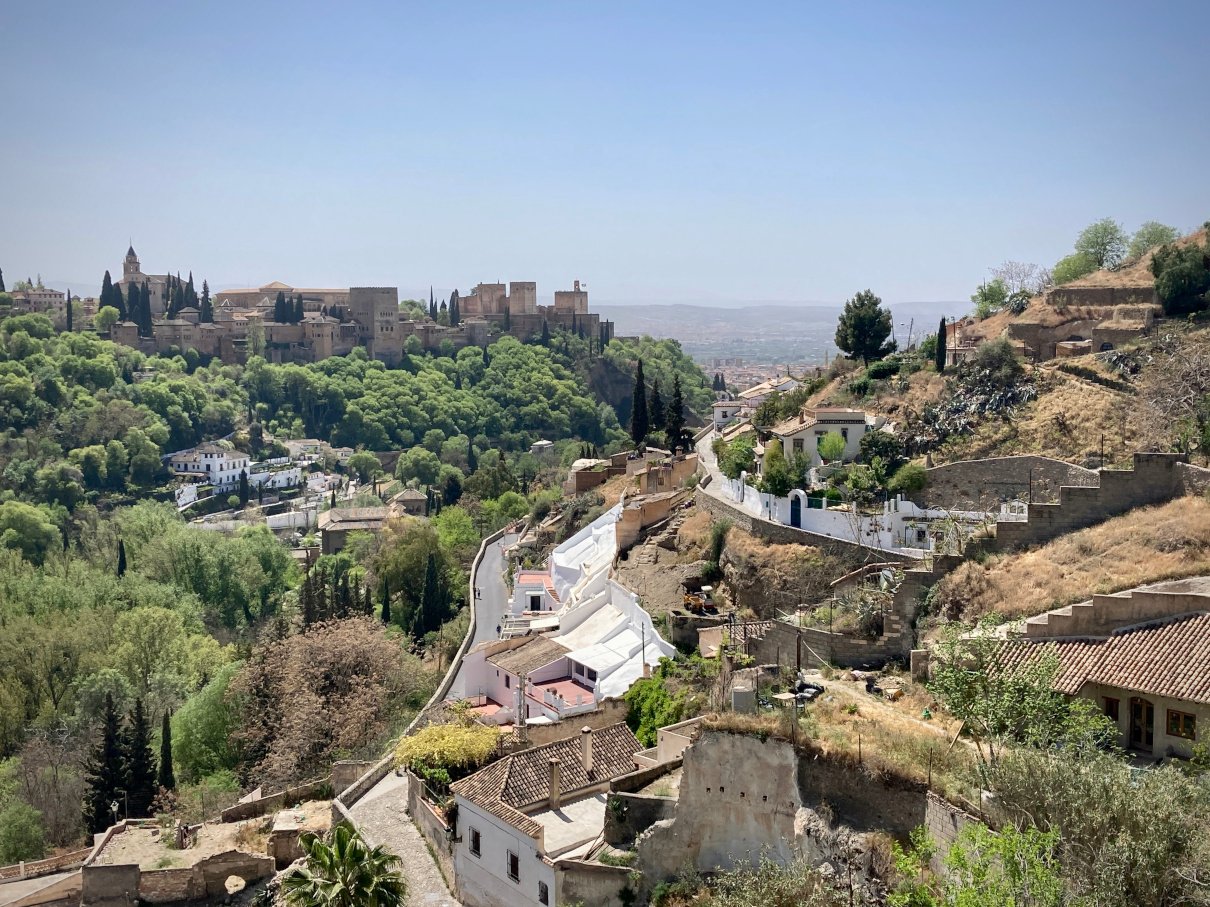 Here’s a photo I took from the museum grounds. You can see the stark divide between the mega-lush extravagance of the Alhambra and the desolateness of the land many of the marginalized people were historically relegated to. It was this history led to the creation of flamenco: