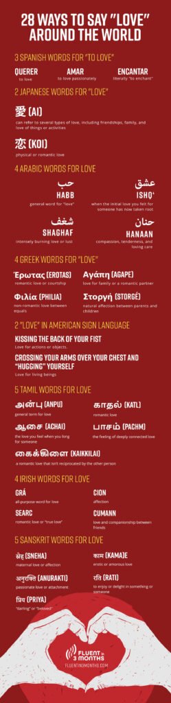 28 Synonyms for Love from Around the World (+ Literal Translations into English)